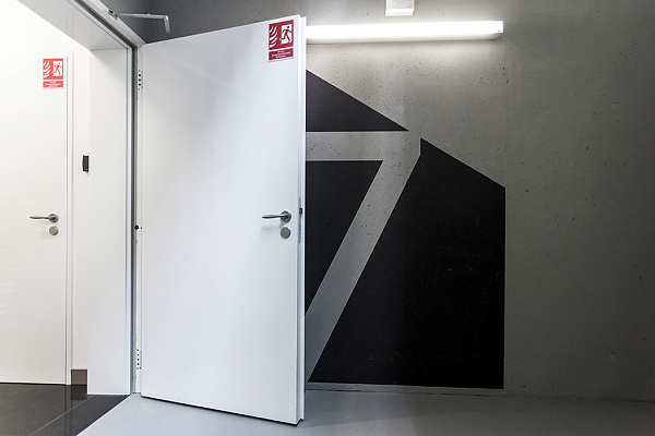 Металлическое дверное полотно с ровной геометрией плотно встаёт в короб и формирует понятный барьер между клиентской зоной и служебным помещением. Чем меньше лишних открываний, тем проще поддерживать порядок, дисциплину прохода и требования пожарной безопасности.